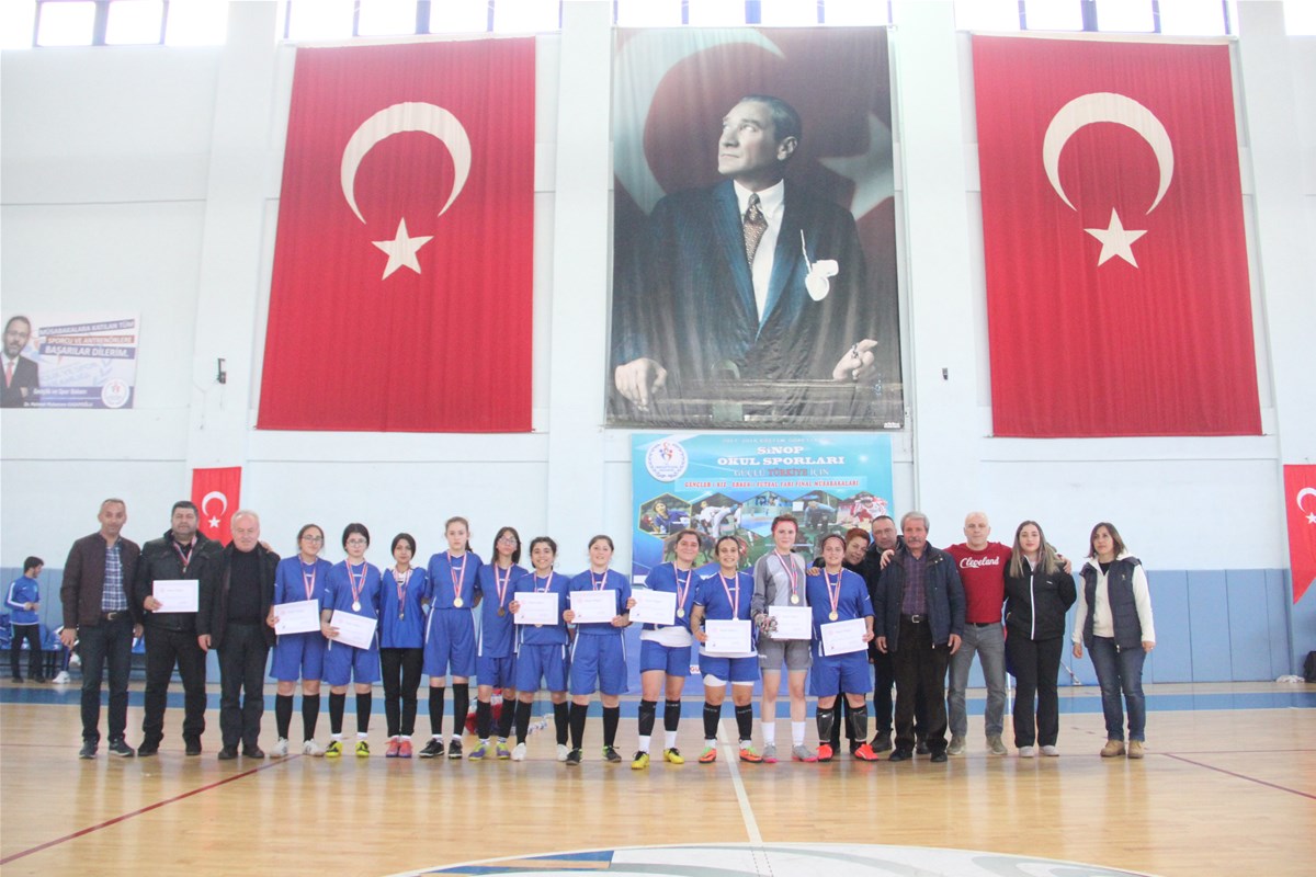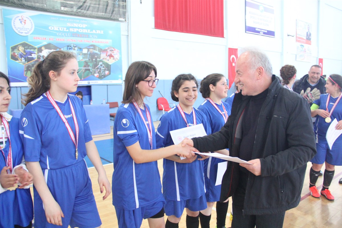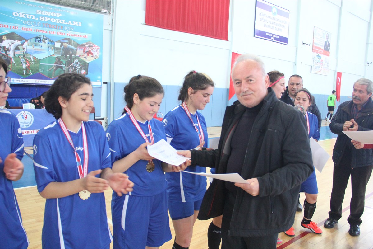 Dereceye Giren Sporcu Öğrencilere Başarı Belgelerini ve Madalyalarını; Sinop Gençlik ve Spor İl Müdürlüğü Spor Şube Müdürü Ramazan YILMAZ, İl Milli Eğitim Şube Müdürü Melih ERDEM, Sinop Gençlik ve Spor İl Müdürlüğü Okul Sporları Şube Müdür V. Sevim SÜMER, Okul Sporları Federasyon Temsilcisi Çiğdem DEMİR tarafından takdim edildi.