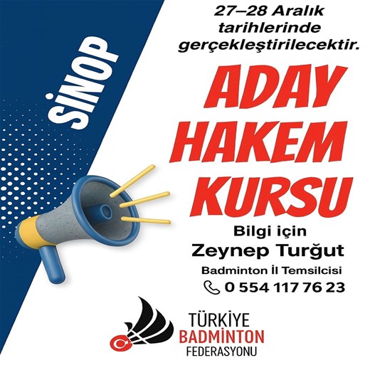 Badminton Aday Hakem Kursu, İlimiz'de düzenlenecektir. Kursa katılmak isteyen adayların temel spor bilgisine sahip olmaları yeterlidir.