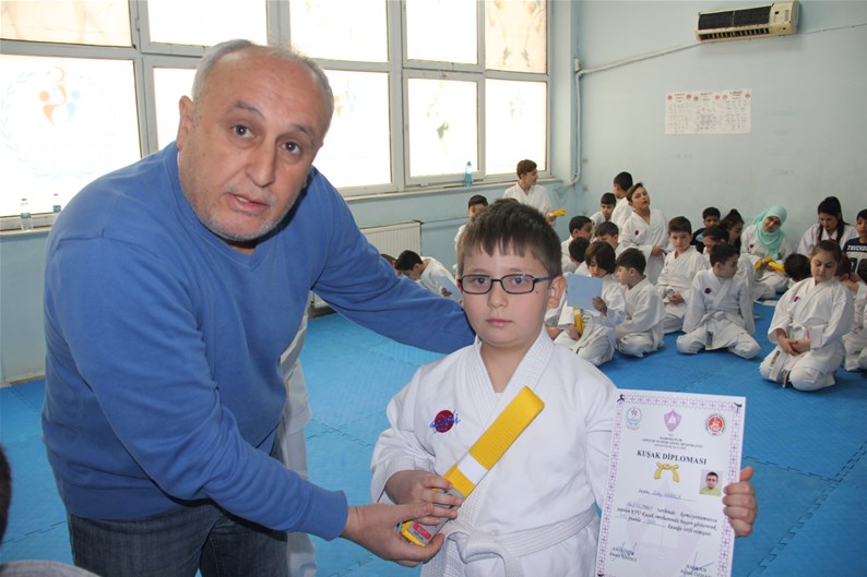 Atatürk Spor Salonunda gerçekleştirilen kuşak terfi sınavına 60 öğrenci katıldı. Yapılan sınavın ardından Sporcular Beyaz kuşaktan Sarı kuşağa geçti.